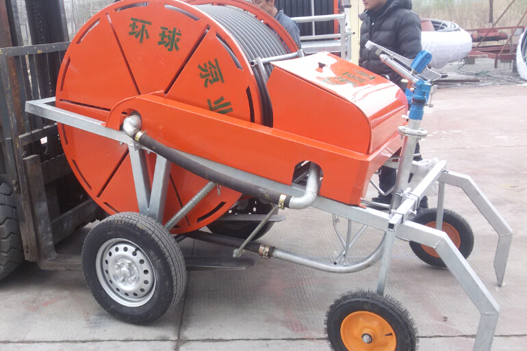 該噴灌機分軟管牽引式和鋼索牽引式兩類。目前國內外大量采用的是前者。該噴灌機的主要優點是單位灌溉面積成本低,轉移方便;缺點是大多配備了高壓噴頭,使得能耗較高,灌溉水的損失較大;并且作業時需要機行道,占用耕地較多。